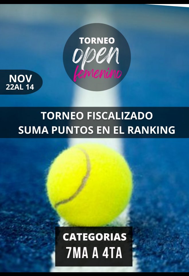»» Evento: OPEN FEMENINO »» Localidad: San Juan »» Fechas: 22/11/2024 al 24/11/2024