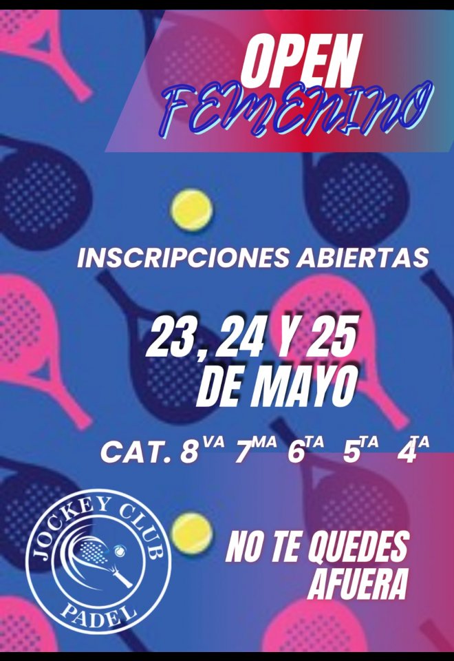 »» Evento: OPEN FEMENINO »» Localidad: San Juan »» Fechas: 23/05/2025 al 25/05/2025