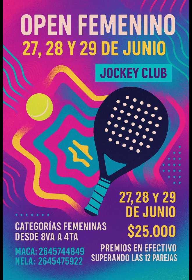 »» Evento: "MASTER OPEN FEMENINO" »» Localidad: San Juan »» Fechas: 27/06/2025 al 29/06/2025